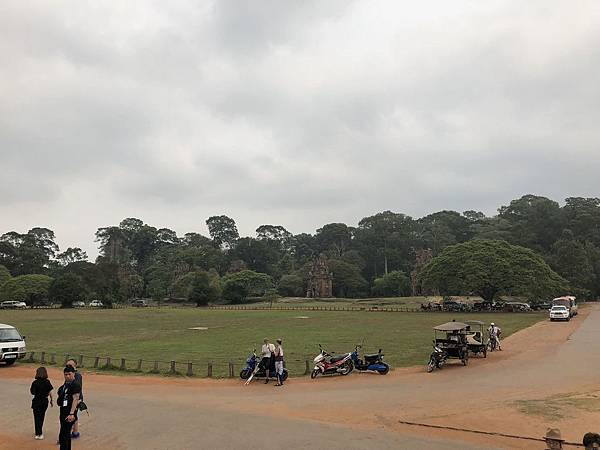 進入大吳哥城後,約走5分鐘,便會到達「鬥象台(Terrace of the Elephants)」,以及看見位於正對面樹叢中的「十二生肖塔(Prasats Suor Prat)」。
