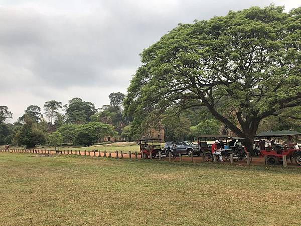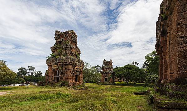 而站在鬥象台上遠眺,於前方樹叢中對稱地(每邊六座)佇著的,便是又被稱為十二塔廟或審判塔的「十二生肖塔(Prasats Suor Prat)」。