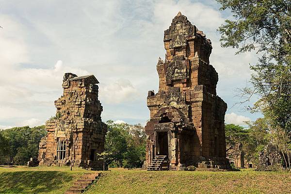 每座塔都有著一個前廳以及正方形基座,個別塔的三角楣飾以那伽圖案雕刻。