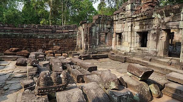 據說這處本來供奉著依照闍耶跋摩七世父親的面容而雕琢的神像,有高僧日夜陪伴左右,不過現在則只餘下一座佛塔。