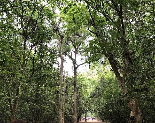 穿過佛塔後,我們沿著兩旁被參天大樹包圍的筆直小道一直往前走。