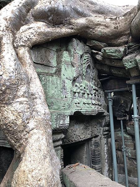 據說,在19世紀中葉法國人發現塔普倫寺之後,由於整座寺廟已被樹根莖幹糾纏盤結在一起,要是強行分開的話便會破壞原來的建築結構,因此修築人員便放棄整修,保持了寺廟原始的模樣;