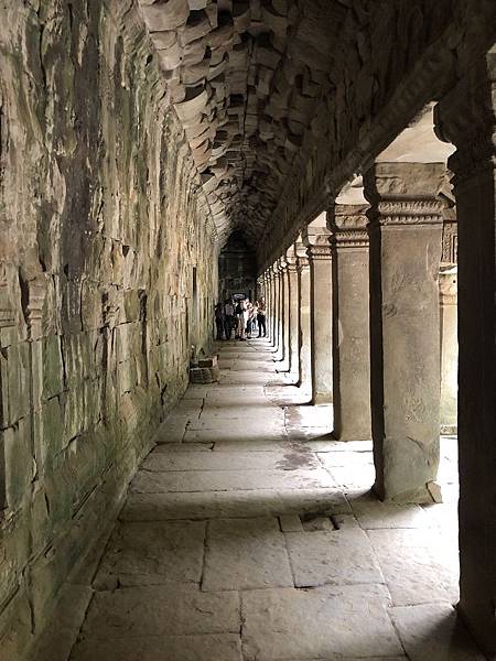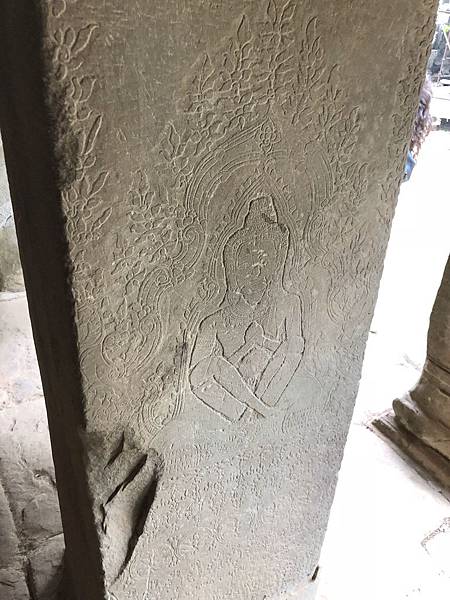要是從東門走進來的話,則會經過一道長長迴廊,長廊頂端有成列仙女Apsara的浮雕,透露出飄逸浪漫氣息,因此也有「舞者長廊」的美譽。