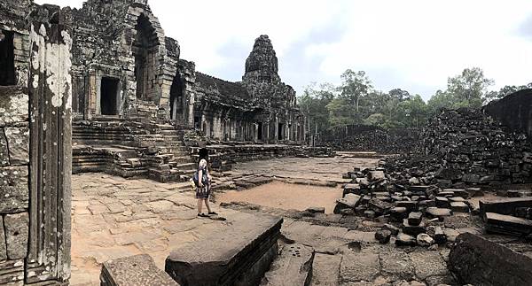 崩裂的圍牆、充滿灰白風化痕跡的石柱、參差不齊的鬆脫地磚,都在透露著已逝去的久遠年華;然而,這彷彿快要支撐不住的一柱一片一塊,卻又像在堅苦卓絕地看守著這片宏偉領土、守護著他們的高棉歷史。