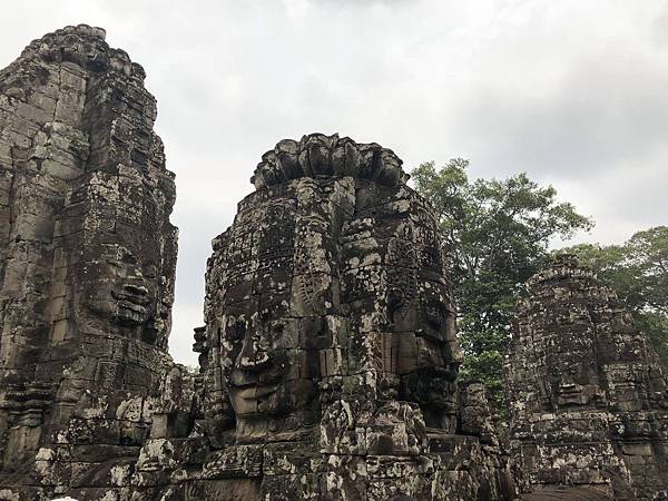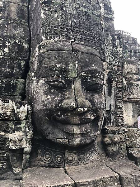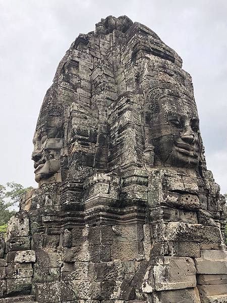 巴戎寺是一組由49座小寶塔圍繞中央尖塔構成的建築群,這些塔在佛語裡又被稱做浮屠;每座塔的四面都雕刻著巨大的「微笑佛像」,又被稱作「高棉的微笑」。