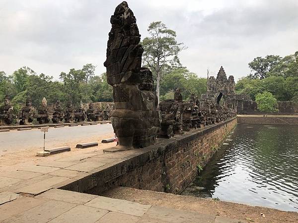 大吳哥城由城牆和護城河保護,城牆高8米,城牆外就是護城河;