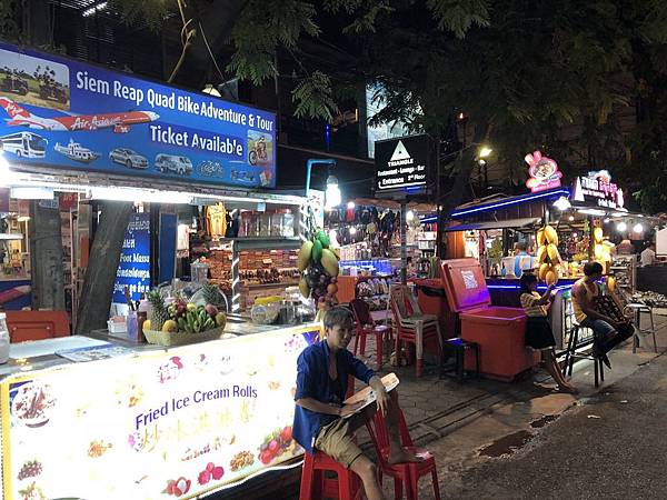來到在暹粒的最後一天,我們終於回到這個心惦惦的地方 —— 飽吃一頓後,我倆便抓緊時間,趕快乘Tuk Tuk車前往暹粒著名的”不夜市集”「暹粒夜市/酒吧街(Pub Street)」。