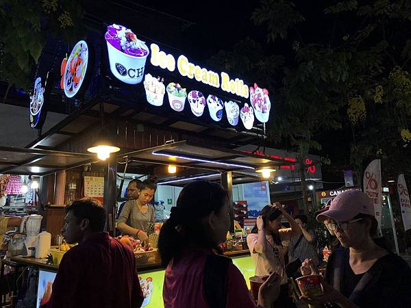 婆倆一致選定街道上最多重覆、也最多人聚集的甜吃流動車 —— 主售柬式捲雪糕的攤檔。