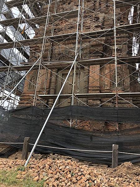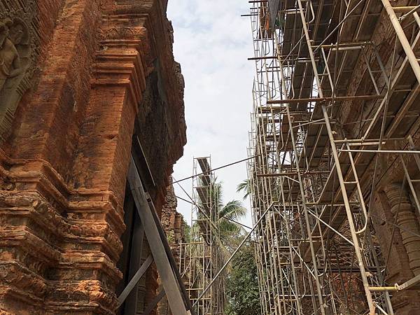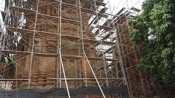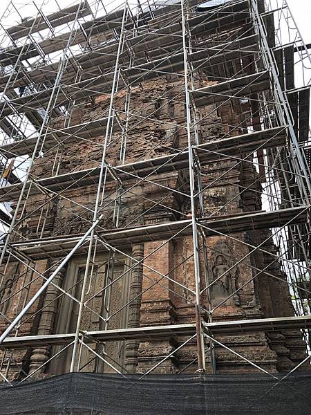 儘管羅蕾寺正在修繕的部分已被鋼枝、棚架包圍,不過在空隙中仍可隱約地看見雕刻在紅磚上的雕塑與浮雕。
