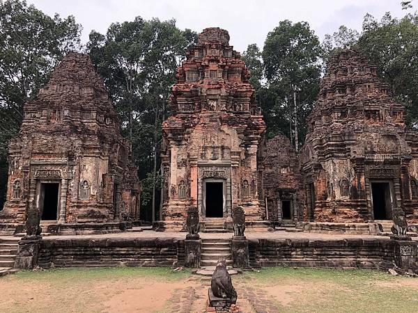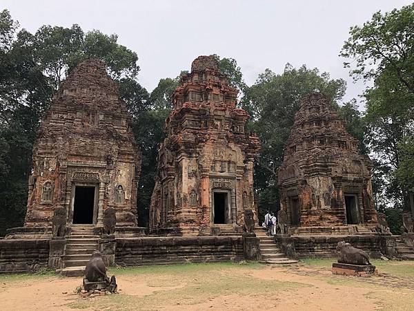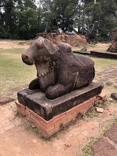 我們從巴孔寺(Bakong)出發,乘搭環保車,約十數分鐘的車程,便來到了這處 —— 吳哥歷史燦爛的起點「聖牛寺(Preah Ko)」。
