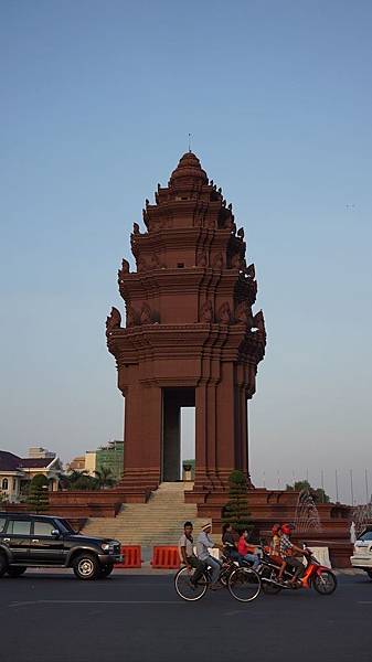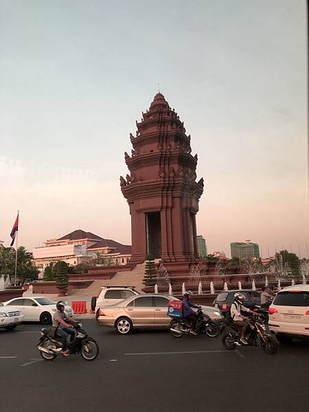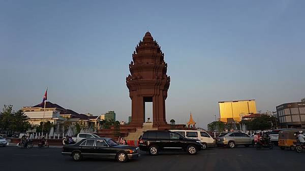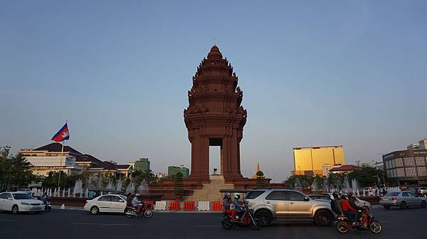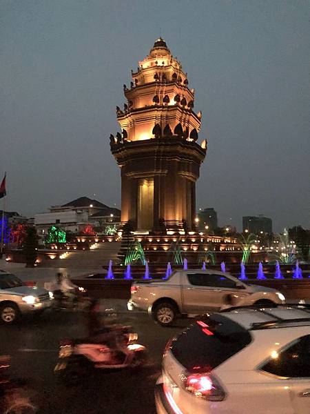 剛下飛機,趁著天還未全黑,我們風塵僕僕地便趕來了位於諾羅敦大道與西哈努克大道的交匯處、獨立廣場中央的「獨立紀念碑(Independence Monument)」。