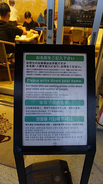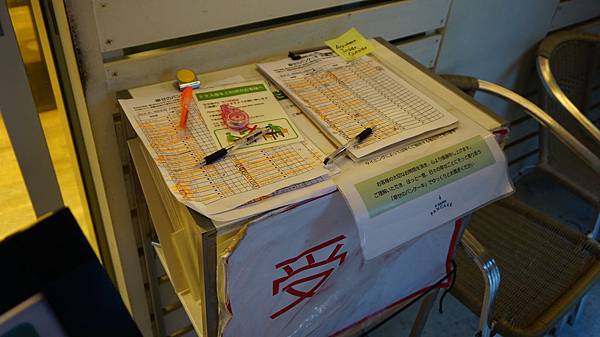 我們來的時候前方還有六桌客人在等待,需要在登記冊上寫下名字、人數、座位取向(沒所謂/店內/室外)。