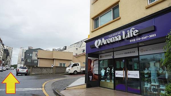走2個街口,會看見Aroma Life亮紫色的招牌(這是最明顯的路標了!!),往左轉。