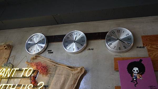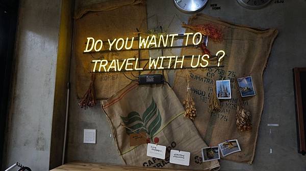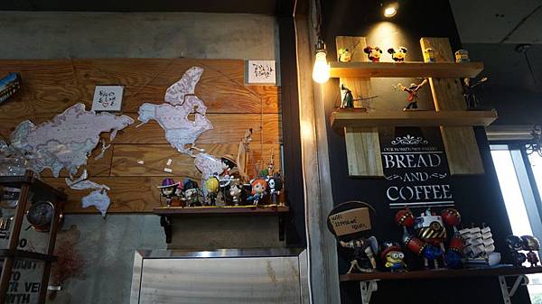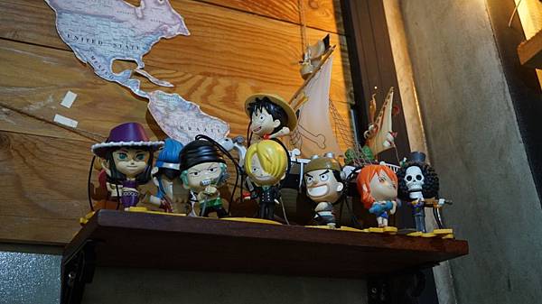 而最特別的是,店內一方面放著許多與旅行有關的裝飾,如進門必看到的霓虹語句、世界地圖、世界時鐘、明信片等等;一方面則放著許多卡通人物的玩偶、模型,(尤其是放在一些會讓看到的人噗哧一笑的位置XDD)實在十分可愛>3<