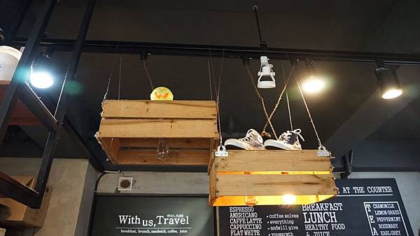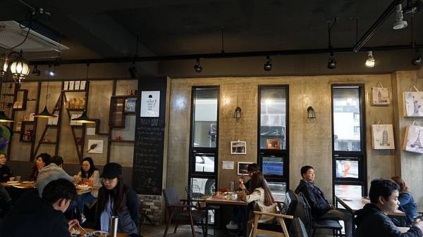 趁著等候期間,環顧四周,店內以原木色調為主色,木色桌子、木色收銀台、木色吊櫃、木色層架:均是木色與木色之間的協奏;牆璧是沉實的灰色水泥牆,牆邊放置了十數件褐泥色的磚頭,充滿工業風的裝潢予人簡單休閒的感覺。