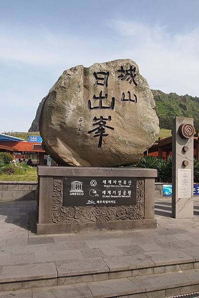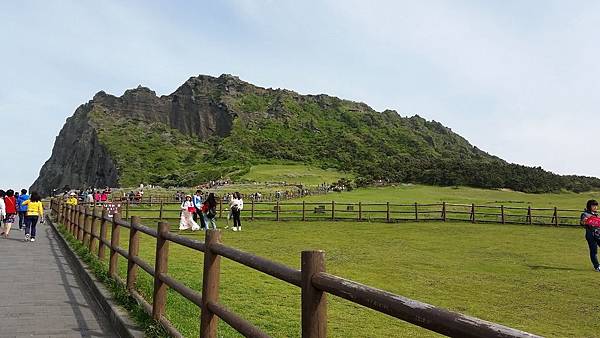 如果說攀上漢拿山是「刺激」,那麼登上日出峰就是「浪漫」了;在日出峰頂端上觀看從蔚藍海岸水平線緩緩升起的太陽,晨輝濡染整片汪洋,耀目非常,讓人嘆為觀止的景緻被譽為是濟州十大美麗之最。不過由於行程所限,我們這次到「日出峰」就只是普通走走而已。