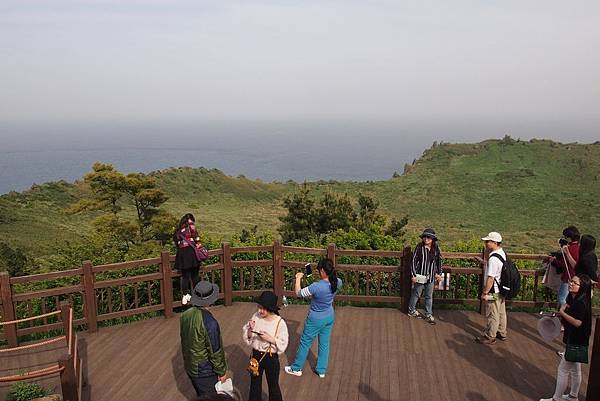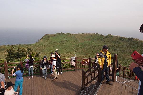 從日出峰頂可飽覽整個濟州的宏麗風景,難怪被喻為是整個濟州觀賞日出的最佳位置;可惜是日天氣不佳,天空籠罩著一片灰濛濛,有點可惜。