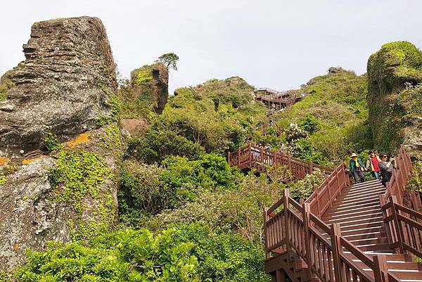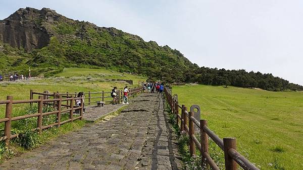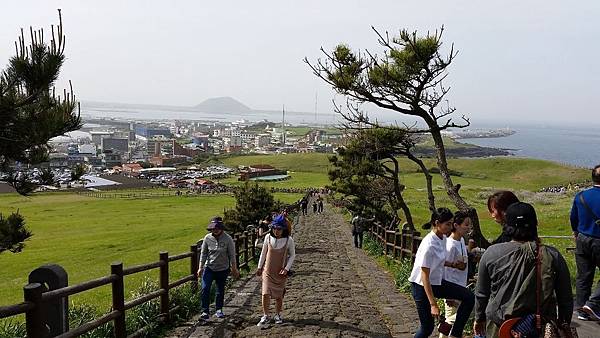 如果說攀上漢拿山是「刺激」,那麼登上日出峰就是「浪漫」了;在日出峰頂端上觀看從蔚藍海岸水平線緩緩升起的太陽,晨輝濡染整片汪洋,耀目非常,讓人嘆為觀止的景緻被譽為是濟州十大美麗之最。不過由於行程所限,我們這次到「日出峰」就只是普通走走而已。