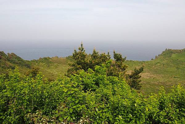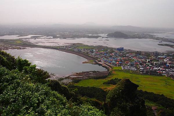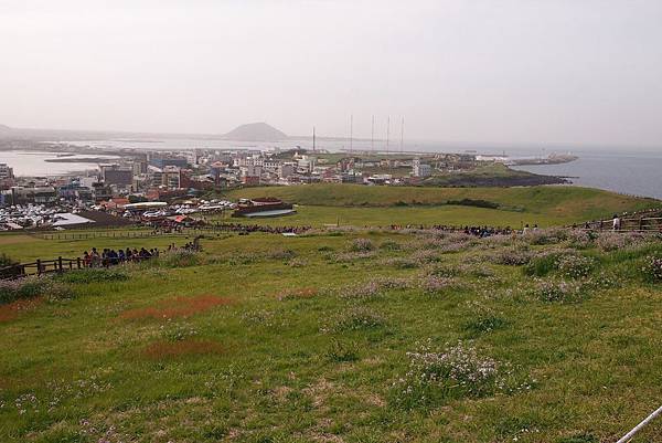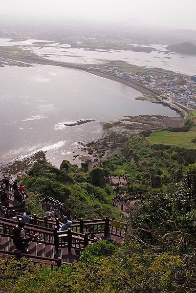 從日出峰頂可飽覽整個濟州的宏麗風景,難怪被喻為是整個濟州觀賞日出的最佳位置;可惜是日天氣不佳,天空籠罩著一片灰濛濛,有點可惜。