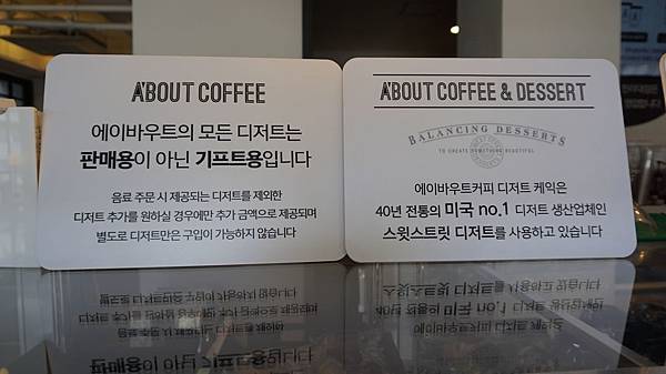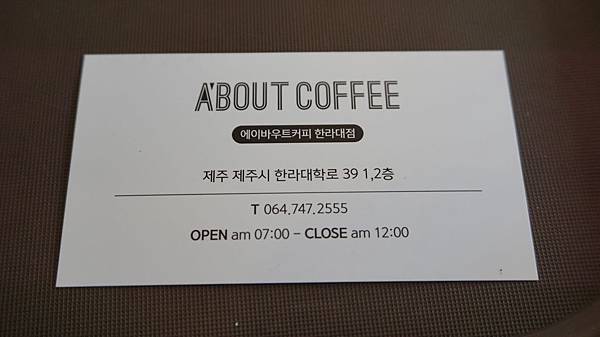 在漢拏大學附近,有一所讓婆婆覺得很貼心(?)很有趣的咖啡廳,這家店的名字,叫「A’BOUT COFFEE&DESSERT」。