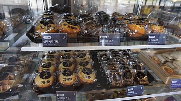 婆婆共點了一杯蕃薯Latte,和多付2,000韓元升級了一件兩杯禮物區(?)的Brownie。