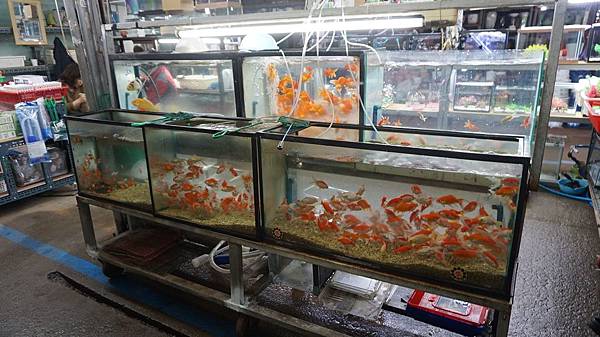 寵物部;除了金魚,也有售賣兔子和倉鼠的檔攤,四周圍著許多小朋友。