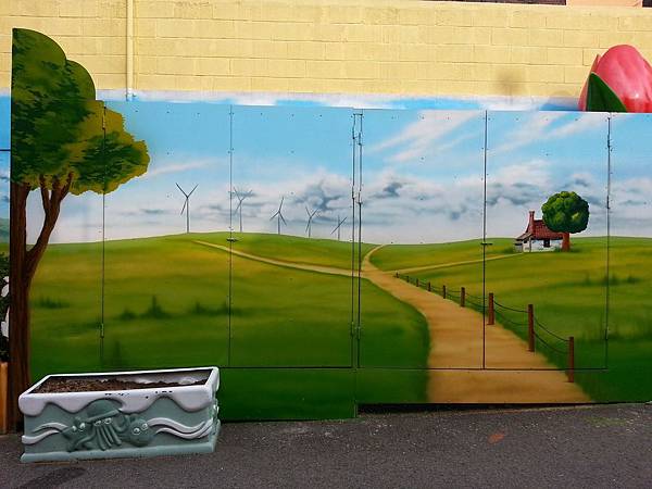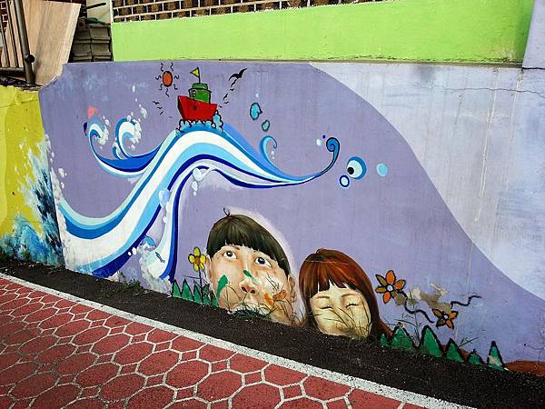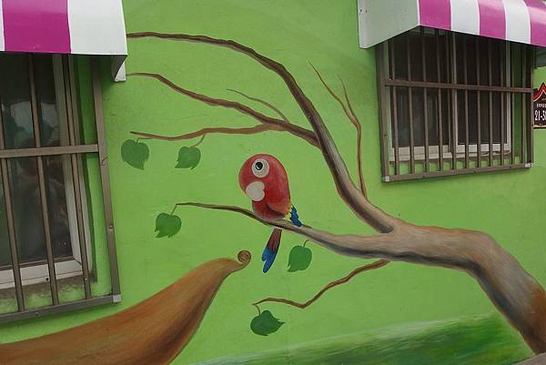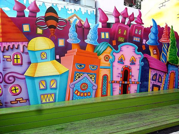 壁畫繽紛的用色就像可愛的棒棒糖,甜甜的、膩膩的、可人的。