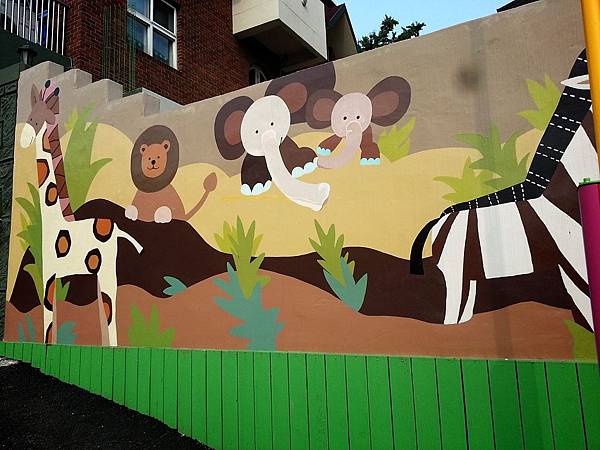 婆婆特別喜歡這些以純色背景繪製的動物壁畫彷彿走進了單純簡單的動物世界。