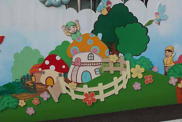 童話村愉快歡樂的氣氛感染了每一個人,無論是小孩,折或是大人;啊,壁畫裡有魔法