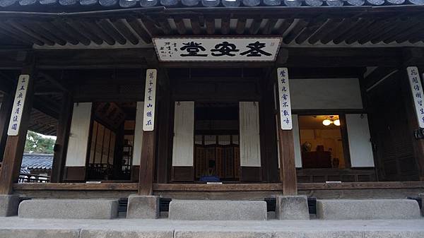 老安堂的平面為T字形,室內由曖炕房和木地板構成,附帶作為閣樓的迎和樓。規模為正面6間,側面3間,是使用圓檁修建的檁椽屋。