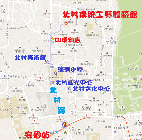 從「安國站 2號出口」到達地面後,沿 北村路(新路名是:嘉會路)一直向前走![]()