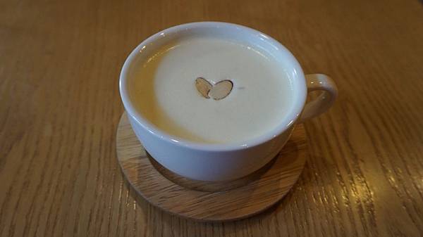說回正題,蕃薯Latte真的好好喝啊>#<裡面有小小的蕃薯粒,很濃稠、很實在(?)的口感,喝完一整杯可以不用吃午餐,真的超級飽腹,而裝飾的杏仁也好好吃>3<雖然喝到底有點甜,不過是甜薯嘛當然甜啦!!(不顧一切地稱讚![]()