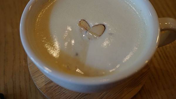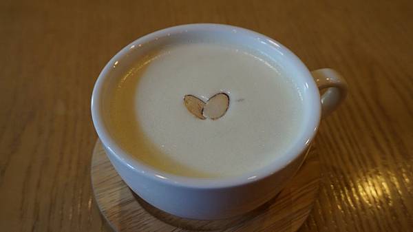 說回正題,蕃薯Latte真的好好喝啊>#<裡面有小小的蕃薯粒,很濃稠、很實在(?)的口感,喝完一整杯可以不用吃午餐,真的超級飽腹,而裝飾的杏仁也好好吃>3<雖然喝到底有點甜,不過是甜薯嘛當然甜啦!!(不顧一切地稱讚![]()