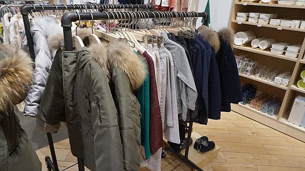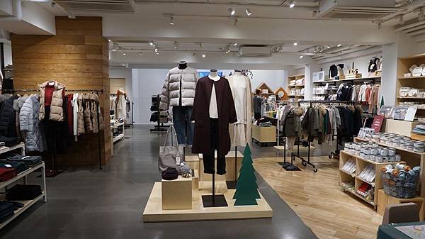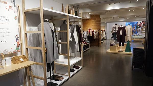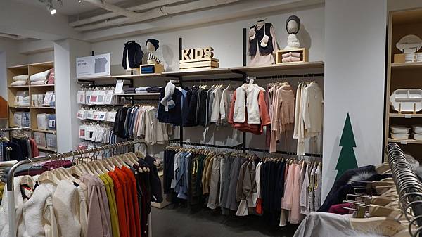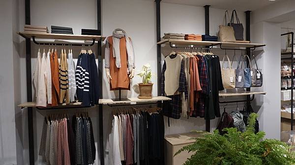 充滿空間感的二樓服飾部,整齊擺放著滿滿簡約風格的當季衣服。