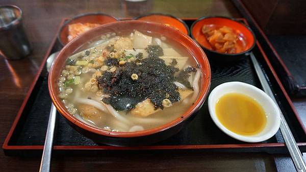 熱心的店主極力推薦老人家點店內最有人氣的「魚糕烏冬(오뎅우동)」,說是每個人來也會點這個:) 好吧那就來一份~~~