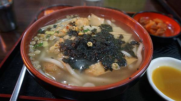 午餐還未吃的婆婆本來想找找有沒有「辣豬肉蓋飯」(沒有就是突然很想吃XDD),結果不知怎的,就被售賣麵食的店主「拉」到店內吃烏冬哈哈哈