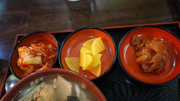 除了烏冬還配上泡菜、醃蘿蔔等伴餐,還有給蘸著吃的韓式芥末,不夠的話也可以追加![]()