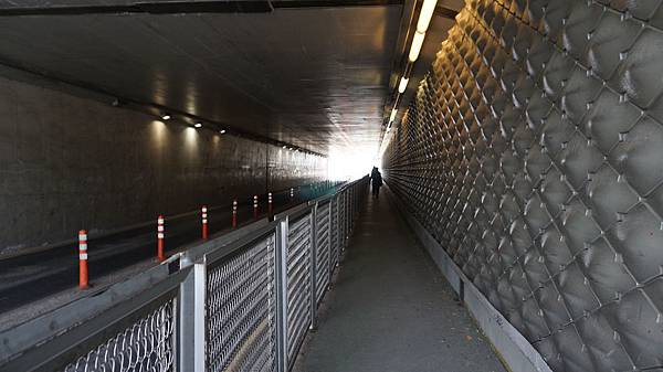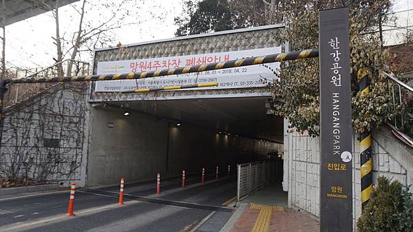 繞過迴旋處後到達「漢江公園出入口」(大家要小心車輛![]()