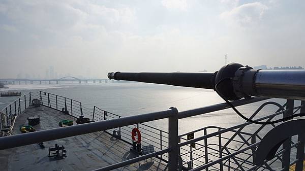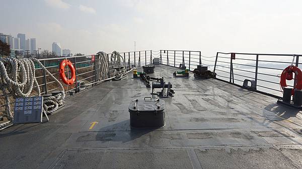 最後,回到上層後~~~難得登上戰艦,當然要走到艦頭,回首欣賞整艘首爾艦的宏偉![]()