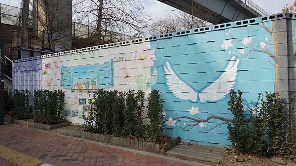 而由於婆婆想要欣賞漢江的冬日景色,所以就決定先繼續往前走找著漢江,再貼著河邊慢慢走過去。