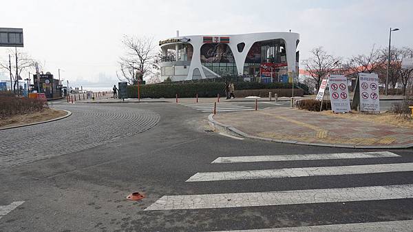 繞過迴旋處後到達「漢江公園出入口」(大家要小心車輛![]()