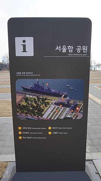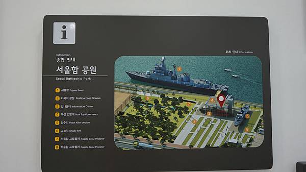 位於漢江江上的護衛艦「首爾艦」。(需先離開服務中心大樓![]()