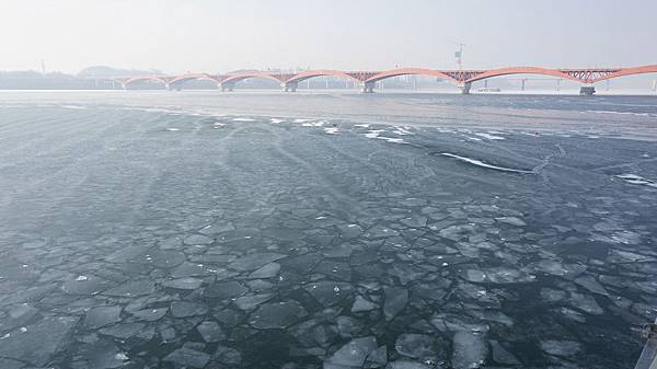 哇~~~~~韓國冬天的冷,把漢江的河水都冷卻成冰塊了呢(好可怕!!!