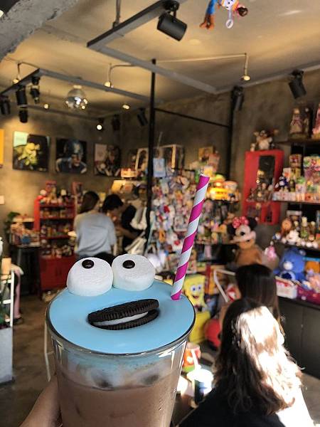 原型是芝麻街Cookies Monster的Monster Choco,表面上蓋著一層厚厚的藍色奶泡,然後放上棉花糖「眼睛」、與OREO「嘴巴」,樣子呆呆萌萌的~~很可愛~~