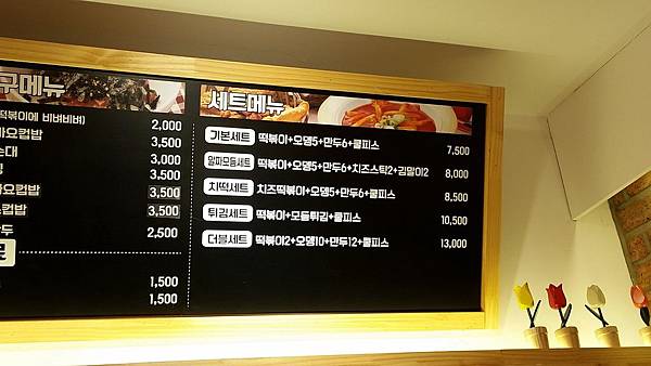 店內主要分為3大類小吃:炒年糕、炸物類、和歸類「朋友餐牌」的國民小吃。(掛著的餐牌只有寫著韓文)
