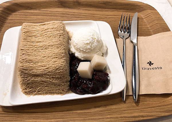 這款像是毛線團般整齊乖巧地躺在碟上的甜點,是由「Tiravento(티라벤토)」出品、首爾現時十分有人氣的線團刨冰(실타래빙수)。
