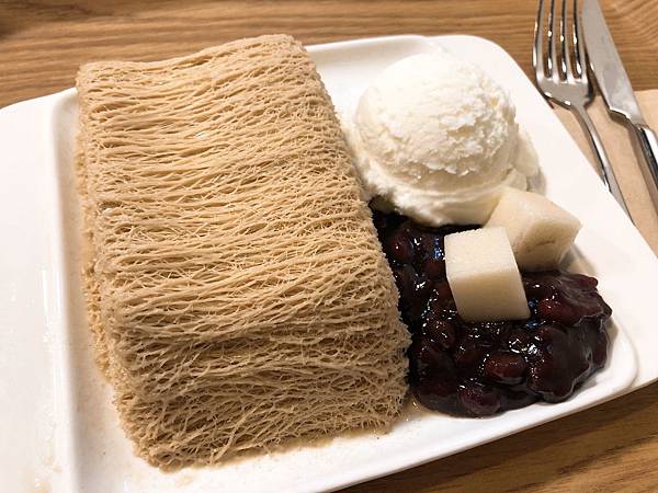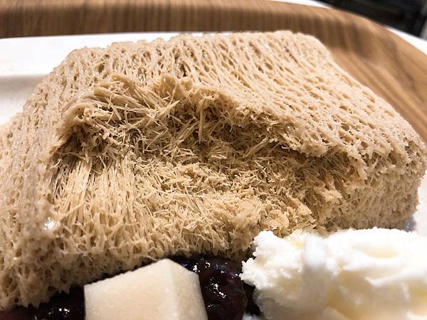 細密如絲絲春雨的線團刨冰,口感就像龍鬚糖般,甫入口中,綿密冰絲便如同觸地細雨般於口腔化開,無需咀嚼,像小蛇般靈活地鑽進牙關、滲進味蕾、與唾液糾纏,直至滿足舌尖饞意。