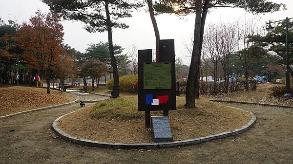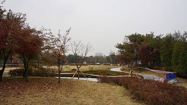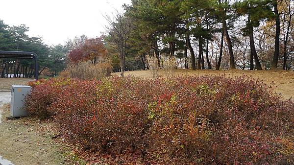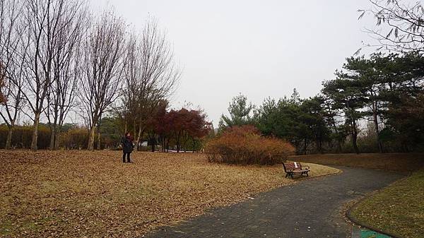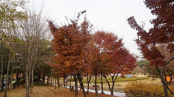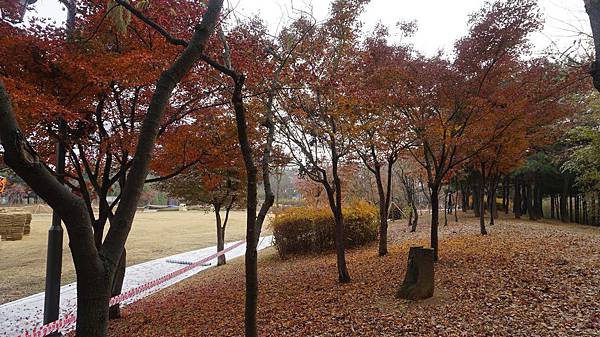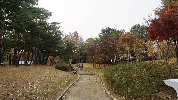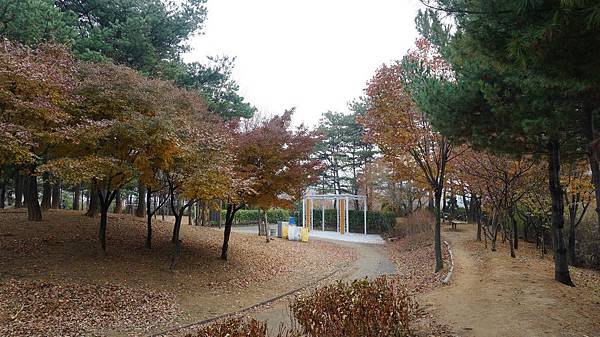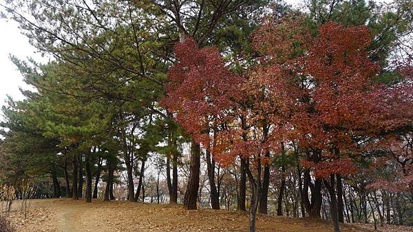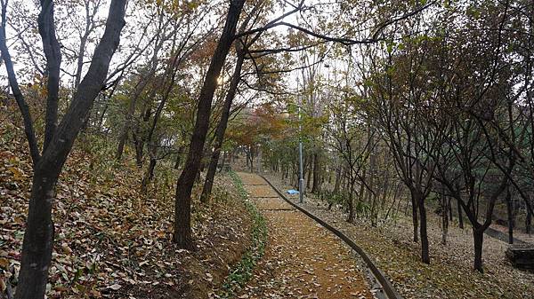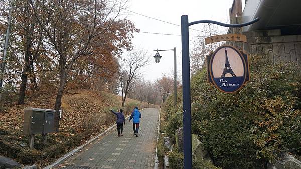 乘著嗖嗖冬風來到「蒙馬特公園(몽마르뜨공원)」,眼前茂密的金黃與艷麗的楓紅豐富了整片樹林,剎是漂亮。