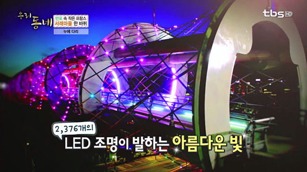 也曾被TBS的「我們小區(우리동네)」介紹過:入夜後,裝上LED照明的蠶橋更是漂亮。
