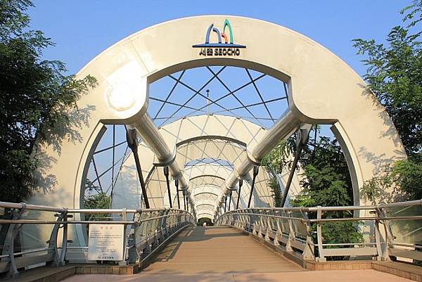這條充滿特色設計的橋道也是瑞草區的看點之一喔~~~(不過因為婆婆要趕在天黑前到達瑞來村,所以就沒有去啦:)